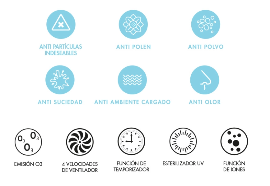 - La emisión de ozono limpia el aire interior de una manera segura y efectiva ante las partículas indeseables