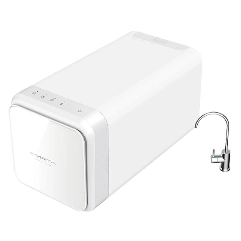 Flujo directo de agua pura. Sin depósito de agua estancada. Diseño versátil, moderno y compacto. Bajo coste de mantenimiento. Larga duración de filtros y membrana.